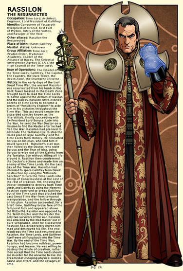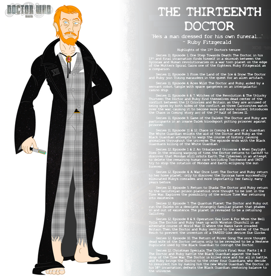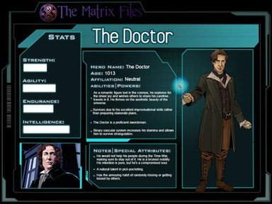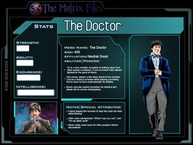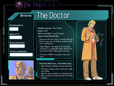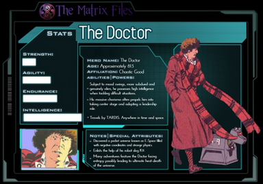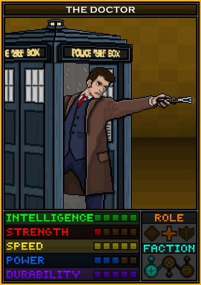 A true pioneer carving a path through the cosmos as a defender of justice. He is more of an intellectual incarnation leaving the fisticuffs to others due to his elderly and frail appearance. Yet the Doctor never gives up a sense of what is right or wrong as he becomes a cosmic caregiver for the universe.The artwork on the right is done by Mr-Saxon. I only edited together the pieces. Other art is done by John Ridgeway.