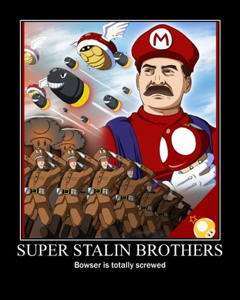 it's ironic Bowser comapres Mario to stalin where Bowser himself acts alot like stalin.