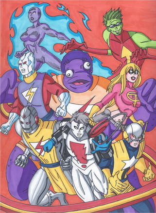 Sureshock- A diminutive man given the ability to channel powerful electrical fields. Another design inspired by the Dave Cockrum style designs of the 70's and 80's.