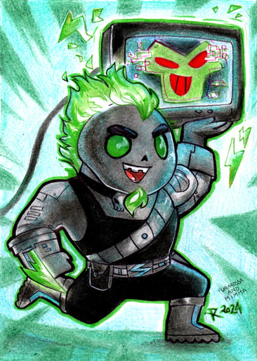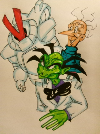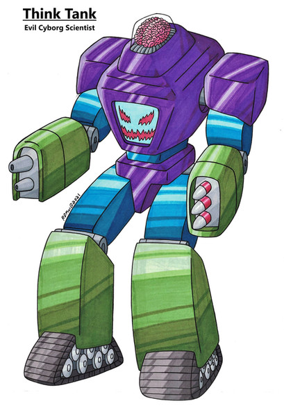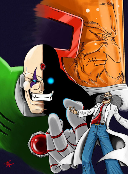 For Technus' design, I decided to go with his original look, plus his upgraded form. I didn't do much to update the upgraded form, but I decided to tweak Technus' original face a bit. I decided to remove his eyebrows, and give his face a more menacing look, somewhat inspired by the Joker from Batman. I was looking to go more for "Scary" rather than "Goofy."
