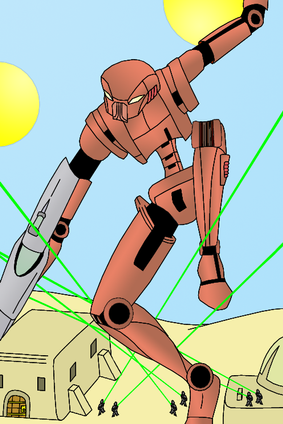 The robot there couldve used some darker hues on his bottom to give more depth as well as a few highlights as to where the light was coming from. Hope my constructive critique helped out and keep up the artwork you'll improve as time goes on