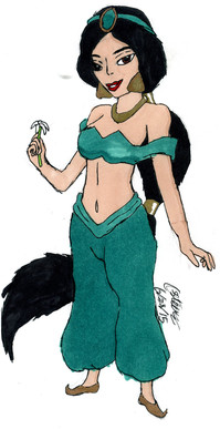 Ooo, this is fantastic! I love how you've embellished her outfit; it's different but still very much Jasmine, which is wonderful to see. Like Wickfield said, I really enjoy her curly shoes. It's a wonderful touch!! There's a great texture to this as well, the roughness to the lines is really appealing.