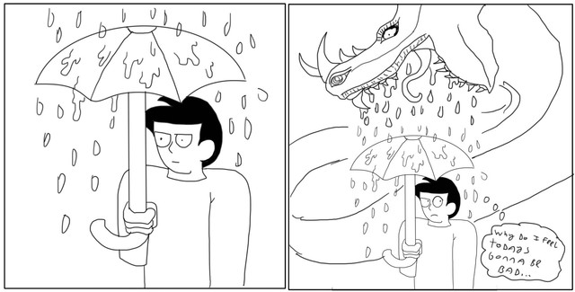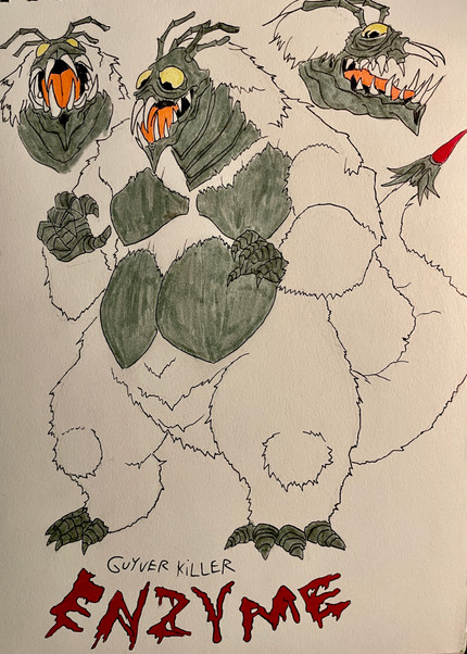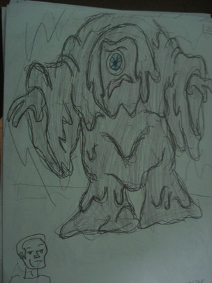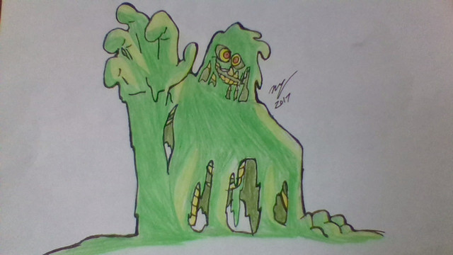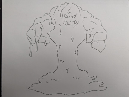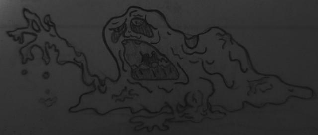 a drawing of a monster blob thing made of a sticky tar like substance.kinda cliche i know, but was trying to practice drawing slime when i drew him.