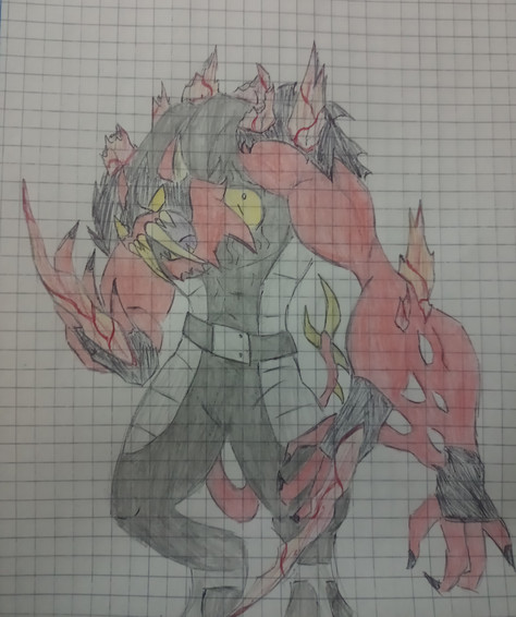 The details you did with the lines on his face, not just his eyes but his eyebrows, teeth, horns, and his nose and cheeks all go together to form a very cool looking face design. The face expression itself has a bitter power to it. Anger is a strong force no matter what species is feeling the anger.