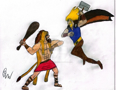 Fun fact, I was thinking of having him occasionally ride Pegasus as his mount during the Gigantomachy as sort of a homage to that film. I also made it so that he absolutely adores children, seeing as he fathered so many in his mortal days. He even challenged Superman to an arm wrestling match, which resulted in a draw.