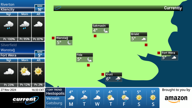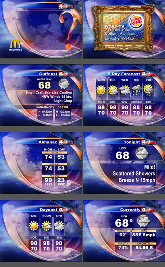 From 2013. This my idea of what a National Weather Service (NWS) TV channel could look like. The video would give a visualization of the audio-only radio broadcasts. In event of a weather warning, the background of the radio ticker would turn red.Image credit: