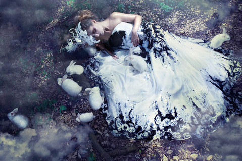 This totally reminds me of Tim walker sort of fairytale surreal images. So gorgeous to describe!