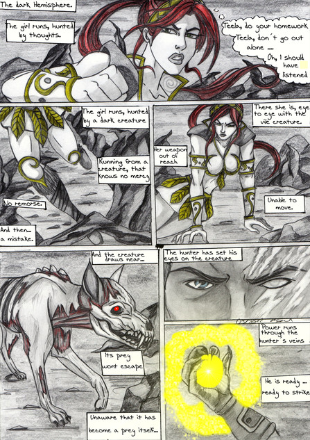 Waaah, I want to see more! You're very good at that, you know. Weaving a story in such a way that people are totally hooked even from the first page. Oh, Rhi, you are totally badass! Oh, so much fangirling, I think I need to sit down *fans self*. Okay, better. Right, the basic deal is, as people have already said, your use of colour is fantastic! The first panel reminds me of all those kiddie fears I still sometimes feel (lulz, I'm such a baby sometimes ) and that's a totally good thing. I adore it! Excellent work, as always, and I can't wait to see what happens next!!