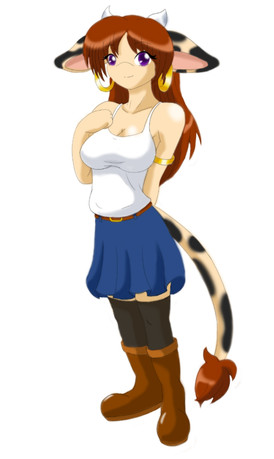 Kapi is a stable hand and professional horse rider. She's very well endowed, as well as being tall at 6'5. Despite her menacing height, Kapi is a shy and sweet girl who dislikes any kind of conflict. She absolutely adores every kind of animal, although her favorite would be the horse. Due to an unfortunate accident, she's cursed to transform into an okapi centaur when she least expects it.Kapi is a best friend to Robin and Glace (on account of them being friends since childhood), and she's the second of their group of friends. She acts as the heart of the group.