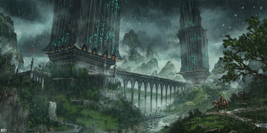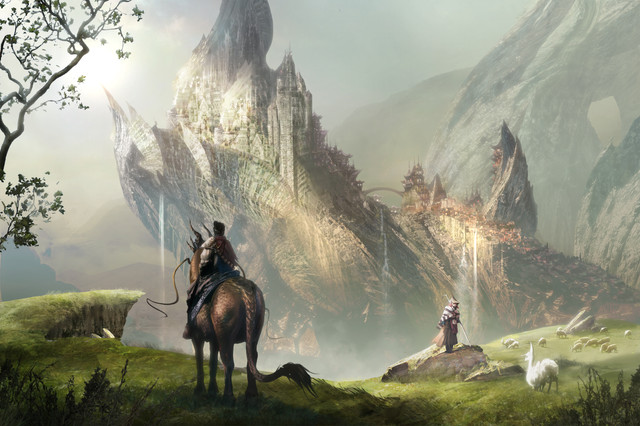 Amazing setting.I just dont understand that huge thing above/behind the city.is it like a spell or is it something solid?
