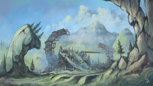 #city #conceptart #conceptdesign #digtalart #environment #factory #journey #mountains #scenery #scifi #sunny #traveller #village #sciencefiction #scififantasy