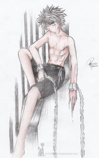 I usually don't ask for a full view, but just looking at this one, it's a must to see all the good detail!Hedran has alway been the kindly, respecting, and shy but cute character of mine. There is however, a small small bit of him that is the fighter. This was brought out in a (rather dormant at the moment) rp I started call "Crimson Chains" where people were almost literally plucked off the streets and put in illegal arenas where the fighters were slaves forced to fight for their lives for the entertainment of others. Hedran was the unfortunate one to end up in that predicament.