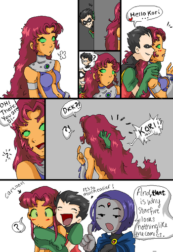 This has got to be the most adorable thing the I have seen all day. I don't know who I want to hug more...Robin or Starfire...I think Starfire, but I don't really know....