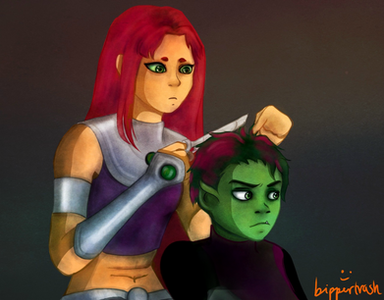 Artist Comments: eh.........yeah.... I remember, like, a long time ago or something, on the WB website-thing, they had all these questions you could ask the "Titans" and you'd supposedly get an answer. One was towards Robin on how he kept his hair like he does. I think the answer was something like "Hair gel, and sometimes Starfire helps me style it." It made me laugh. And, a long time later, I finally came out with this *dances*