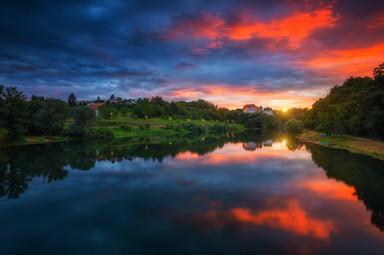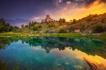 sunset at source of the cetina river in croatia...