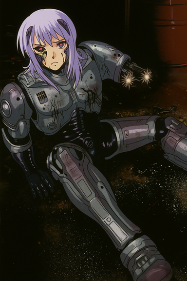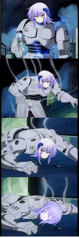 Because he fought with a large robot at close range, he lost his right eye and left arm functions and wrecked.