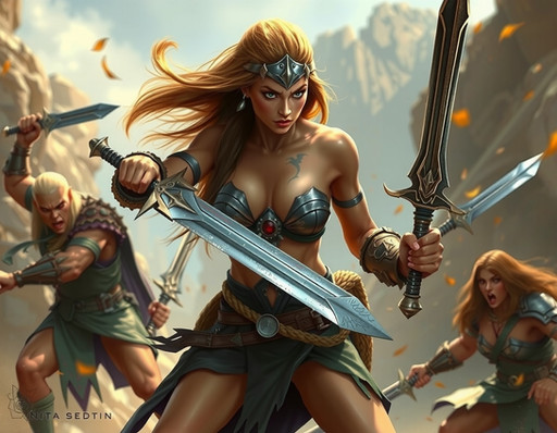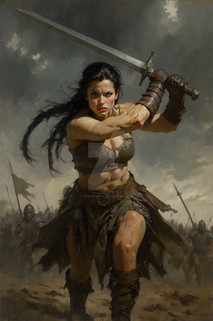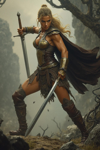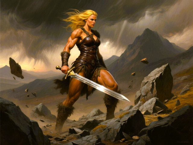 #warrior #fantasyart #fighter #warriorwoman #battle #digitalart #barbarian #characterdesign #fantasycharacter #epic #sword #medieval #kritaartwork #ai_generated_art