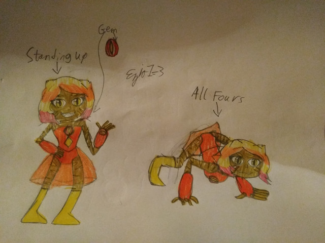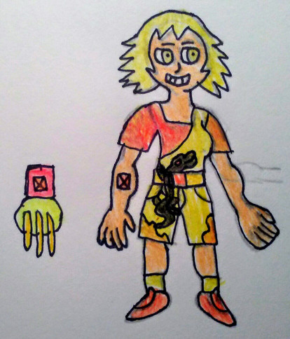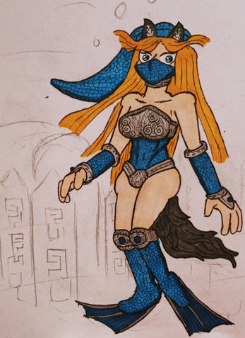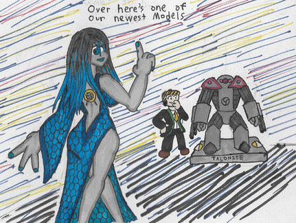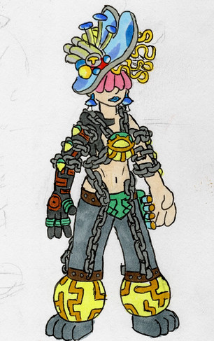 An OC I formalized this week. I haven't pinned down her lore yet. What I have at present:Tanzanite is a one-off prototype android from a future Earth. Her creators mostly build utility robots, and she serves as a company mascot. Due to some weird shell company arrangements, she also owns herself.