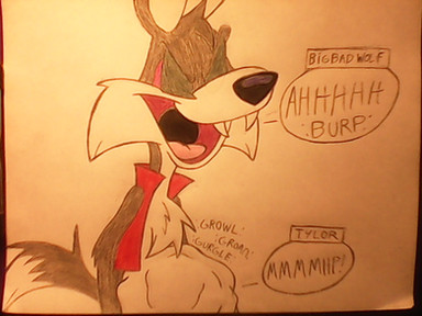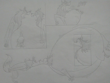 Raging-banebou asked me to draw his new monster "Wolf of gluttony" and have him eating harpie lady.Related content