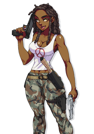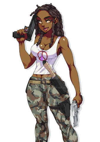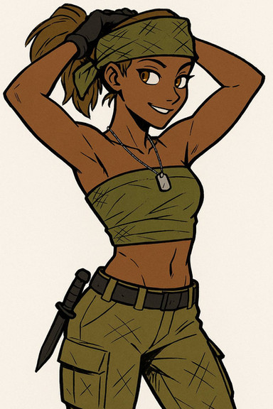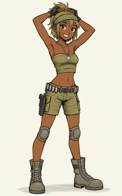 #characterdesign #badass #originalcharacter #gun #military #digitalart #cartoon #warrior #scifi #ai #greenhairedgirl #greeeneyedgirl