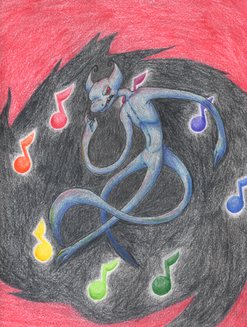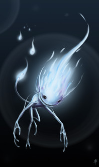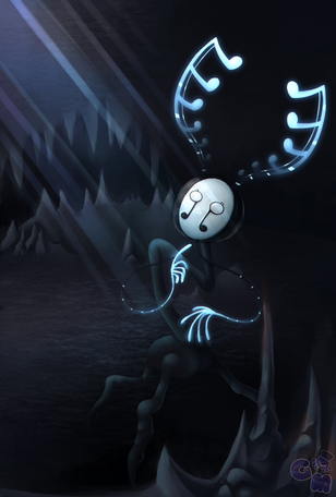 Oohh wow I love this one so much. Those cute little ghost thingies make me so happy! That one on the far right that's kind of bowing is my favorite. The musical glow coming from the flute is so pretty it looks like embers or something and I love how you can see it through the hand that's over it. And those legs.. They are so magical!