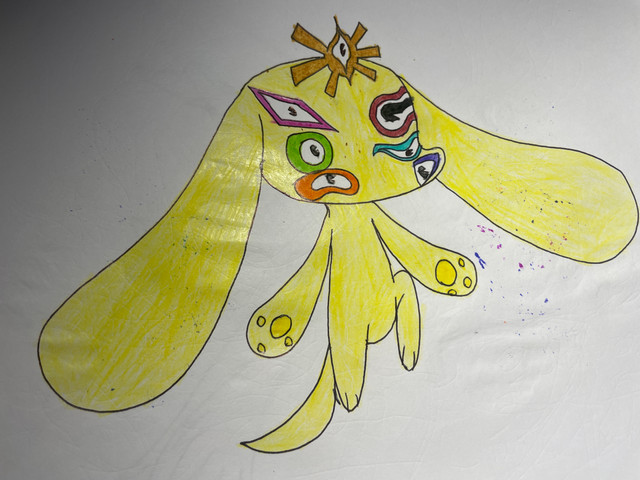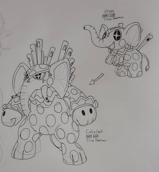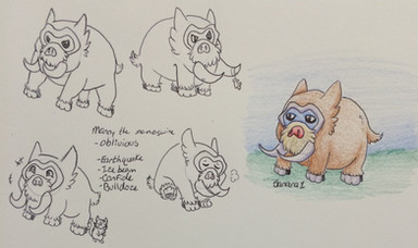 I couldn't think of anything so I asked my brother to do a sketch, it didn't look at all like a pokemon so I re-drew it and that was the Basic Pokemon made. My brothers main Idea was a dog on its hind legs, but I thought it would look better if it was based off a Basset Hound, the reason for its nose being big was my brother's Decision.