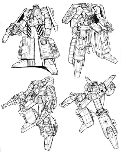 He transforms into an armoured cybertronian vehicle.. I'll draw the alternative forms later.
