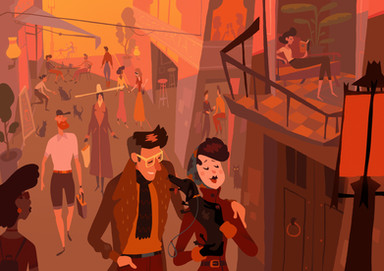 what a cool chick-- i love the smooth style to the work also, and the vibrant colors!