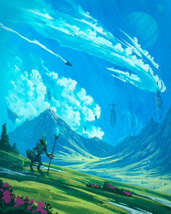 Originally part of a much larger story involving space men, aliens, and some cowboys- This image is now available for you to hang above your bed to dream of such wonderous and peaceful settings.Related content