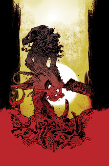 I have to praise you for the absolute sharpness of everything here - the gnarled tangles of roots, the angular thrusts of branches, the blood. And, usually a cooler contrast pairs well with such dramatic warm tones, but the subtly of the green around the edges is enough.