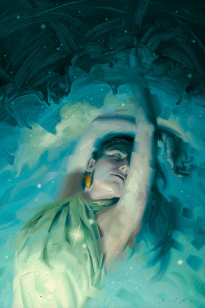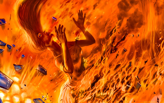 The way you applied the paint makes it look like liquid - and the "energy" that you also describe in your description is almost feelable. I also love the color-tones you used, and you also got that woman's anatomy very well - I love how she gives that whole picture a whole lot of detail, that might not be visible without her.