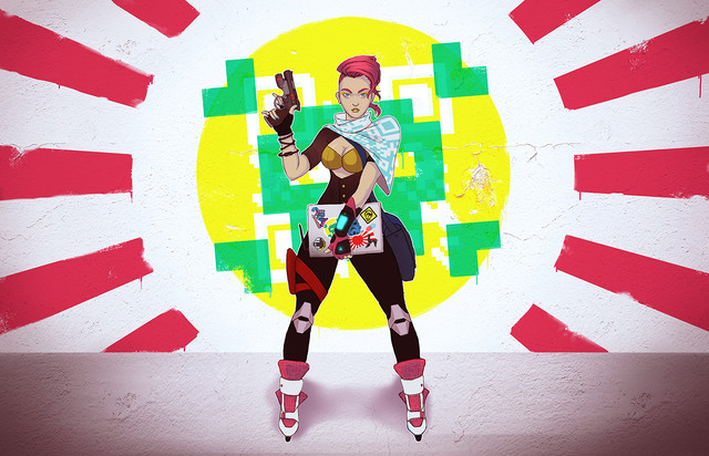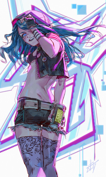 fun style trial ^^ oh, watch out for the color choice btw, the tattoo you gave her has a green that matches very much with the graffiti, just a tiny thing. Love her additude displayed though.