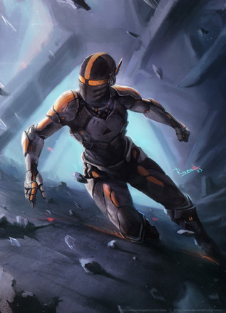 I really like the composition, and the dramatic pose of your character. The suit design is excellent, and the guy looks very cool. Brilliant work!