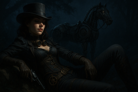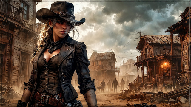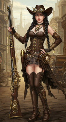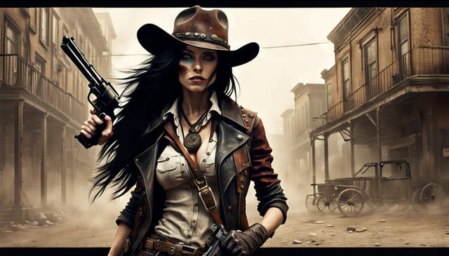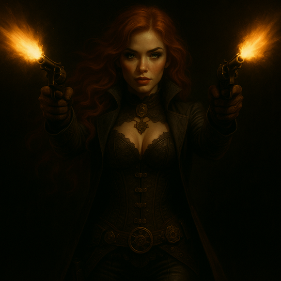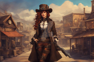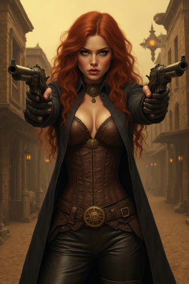 #warrior #western #digitalart #characterdesign #fantasyart #fantasycharacter #steampunk #celia #madame #redhair #revolver #999986666