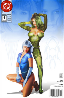 The idea here is that Powergirl confronts version of herself in different dimensions. Most drees like her and look the same other are total different, (ie. an Asin girl becomes Powergirl or Powergirl looks more like Supergirl in an alternate dimension). I put the most radical ones in the front. For most of the ones in the background I used the same model (Charlie O'Neil) over and over.