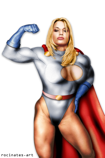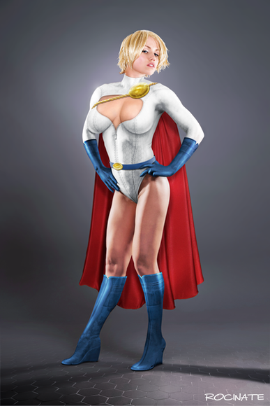 Hey guys here it is! I’ve done so many PowerGirl manipulations that for this one I wanted it to be different. I’ve made some minor changes to her costume like the belt and suit (this one is a bit more… supportive). I went through about have a dozen different models for the faces. PowerGirl is a tricky one. She has to be beautiful, yet strong and have a lots of attitude. I thing my choice here captures all that. “You want her, but you are afraid what she’d going to do.”For the symbol I used a design that was part of her white/yellow suit. It is also incorporated in her belt.