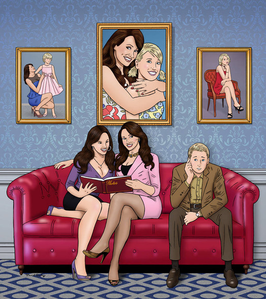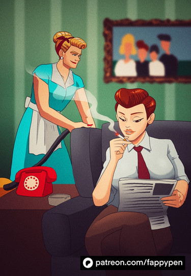 Once again, great storytelling. And beautiful intimacy between the two female characters. Stepmom is as physically hot as she should be (those crossed, hosed legs are truly scrumptious), but the pictures on the wall reveal her complete confidence in female superiority.