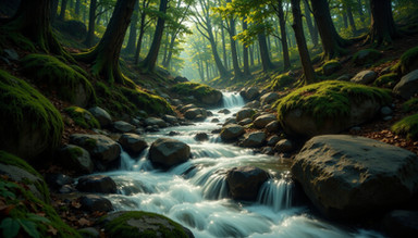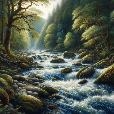 #forest #digitalart #landscape #moss #natural #nature #photorealistic #rapids #river #rocks #stream #trees #vegetation #ai_generated_art #artificial_intelligence_art #synthography