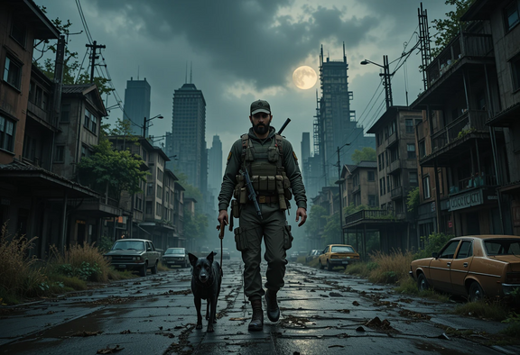 #apocalyptic #digitalart #epic #scifi #alone #cityscape #destroyed #dog #dystopian #lightning #man #mud #photorealistic #rain #sciencefiction #urban #german_shepherd #ai_generated_art #artificial_intelligence_art #synthography