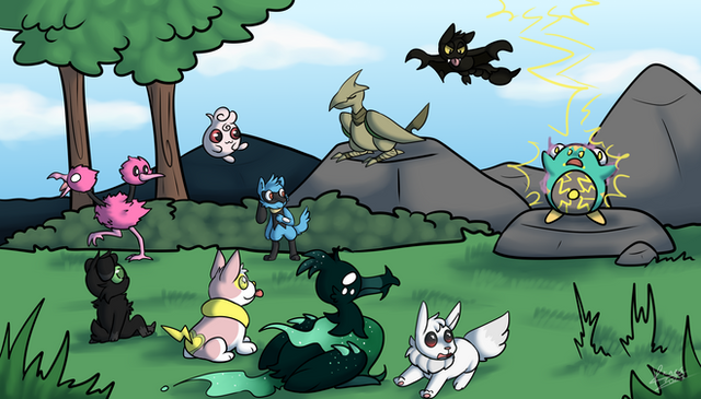 Venom rolled his eyes, and shook his head. "No idea, but it doesn't sound very intelligent." He teased the 'Foxie'. Cora overheard the conversation, and she grinned darkly, grumbling to herself. She didn't hold much company of any others, but she was close enough that Titan heard. He perked his ears, and then leaned over to Zane that was sitting and protecting the cyndaquil Blueberry. She was due to evolve any day, and Zane had taken a protective watch over her. He lowered his maw, whispering the secret to her, and she squeaked! Thanos the Cubone ran to the sitting Rattata, Boo.
