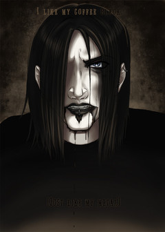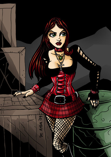 3rd in a series of 4. They were meant to be a mixture of sort of alternative fashions/sub-cultures, but ended up just being "goff, goff, goff, NURSE"!Random character ... not quite so keen on how this one turned out. Vampire!LOL. This series is going to be available in print at May's London Expo, as well as in 1inch badge form, and possibly bookmark form, providing I don't come up with better small designs before, oh, next week.