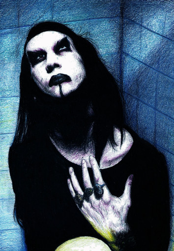 Seriously gailchans this is beautiful, and all real media you bastard ;-; god I could never do this. Let me start with how much I adore his hair. Where it falls over his shoulder is just perfect ;-; the lighting makes me tres happy. His face is so clean and perfectly done. God he's so pale ;-; I really like his outfit and how its oldfashioned style but has that too cool zipper going up the middle and jesus h T___T stop being so awesome you even drew the zipper teeth god gail :C seriously you're too amazing. And I think I just might totally steal those claws ok ;-; cause i can't get them out of my head now. They'd make such a badass weapon and yeah ;o; I absolutely love that cute spiderweb. ro's so goth and cool xo what ;-; bg?? dude its amazing. I love that big gay couch ok ;-; it looks comfy.