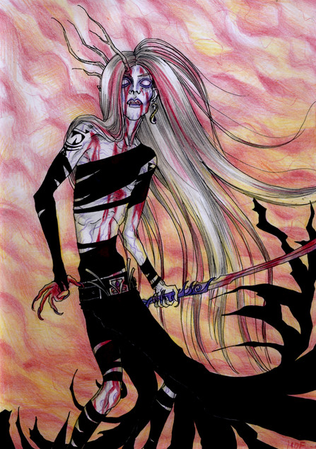 Ooooh...lovely! Really really beautiful job with the markers. One of these days I'm gonna get me some makers and try them out. But I love the composition and the way the character is posed...or posed to death rather...hehe.
