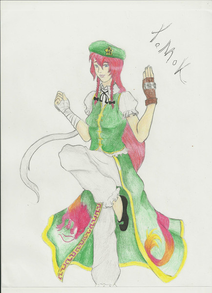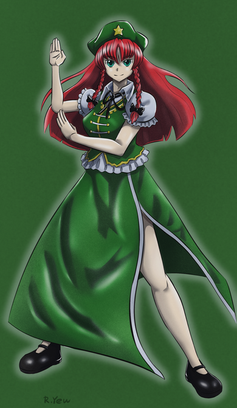 Saw this picture somewhere else and had to track down the source. Meiling's not my favorite character, but I like how you drew her here. The outfit is great even if it isn't one she wears in canon, and someone else beat me to complimenting your shading. I like the expression.