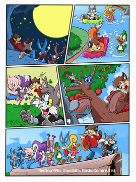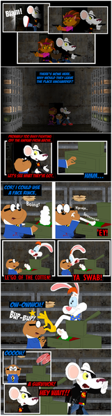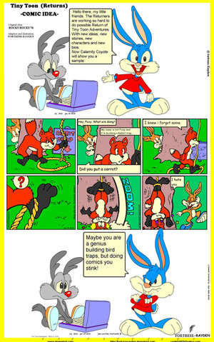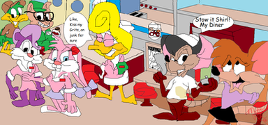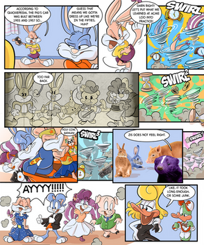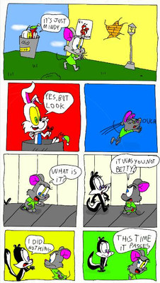 "Unlikely Heroes" My very own comic spin off about Rhubella and Roderick Rat those naughty Rats I consider my ALL TIME favorite Toons. As the biggest Tiny Toon fan I love the unexpected, and I love role reversal. Here they see a giant lazer destroying Acme Acres heading for Perfecto Prep! They don't wanna die, but they get a chance to save themselves. I would think they'd be scared but Rhubella knew exactly what to do. They destroyed the Alien weapon and saved Acme Acres. For a while the city will cheer them. But they still go to their main enemies to rub their noses in it just like the true rats they are. I think they will always be bad...But we love them this way. Happy Independence dayRoderick Rat, Rhubella Rat, Buster Bunny Babs Bunny and Acme Acres and other Tiny Toon related things are trademarks of Warner Bros. Do not copy or download! Made originally December 29, 2015