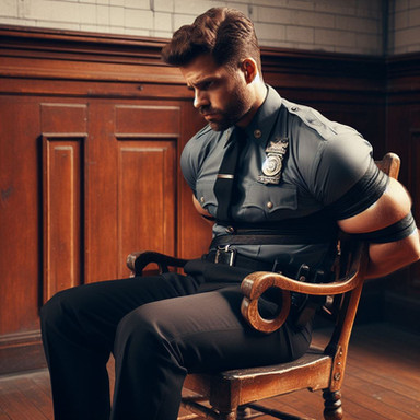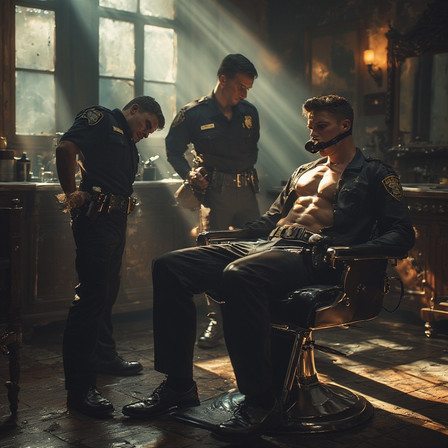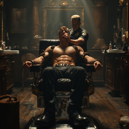#body #leather #barber #belted #captive #chair #fit #forced #harnessed #initiation #lockeddown #male #man #newguy #restrained #shoes #trapped #uniform #ballgagged #shoesfetish #uniformfetish #gayai #strappedtoachair #gayaiart #patrolshoes