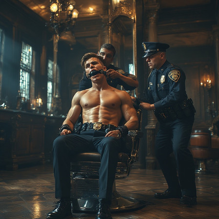 #leather #body #barber #belted #captive #chair #fit #forced #harnessed #initiation #lockeddown #male #man #newguy #restrained #shoes #trapped #uniform #ballgagged #shoesfetish #uniformfetish #gayai #strappedtoachair #gayaiart #patrolshoes
