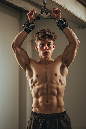 #body #muscle #abs #bodybuilder #chains #chassis #danger #detailing #handcuffed #hoist #leather #male #man #meat #natty #nips #pecs #pits #ride #trapped #tuneup #hoisted #handcuffbondage #chainedbondage #gayaiart