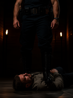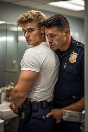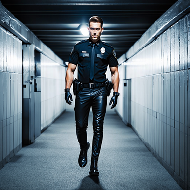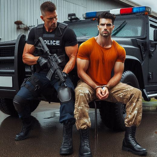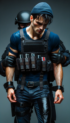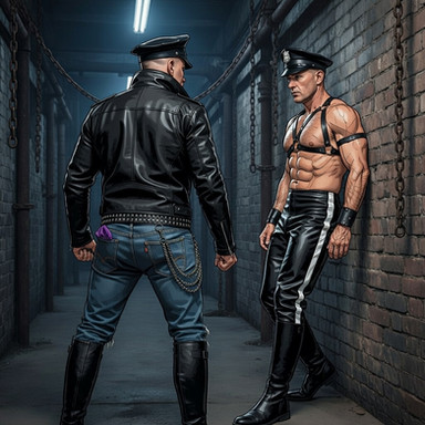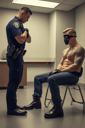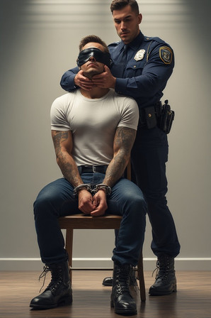 #belt #boots #bootsfetish #chained #cop #domination #gun #handcuffed #ink #interrogation #leather #male #masked #men #muscle #suspect #tattoo #uniform #weapons #handgagged #gayaiart