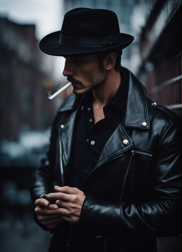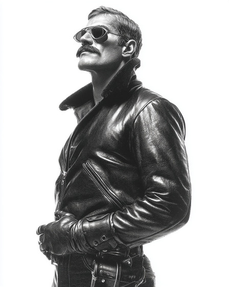 #photography #portrait #portraitphotography #ai #dreamup #leather #vintage #body #tattoo #badboys #glovesfetish #leatherfetish #smokingfetish #sunglassesguy #ai_art